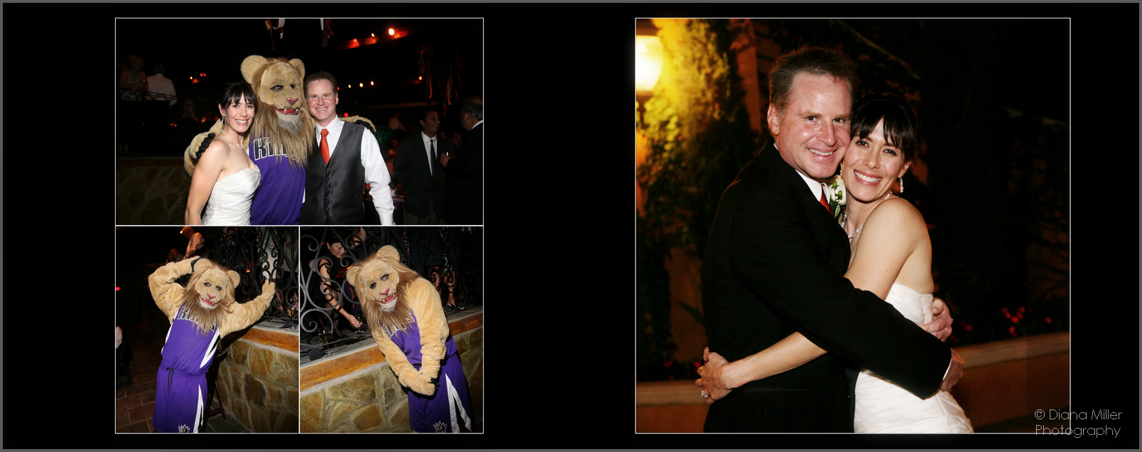 Were the bride and groom avid Kings fans…? Or where they simply friends with the charismatic basketball playing lion..? Indeed they were friends with this larger than life mascot we have all came to love! Slamson’s been entertaining the crowds at Sacramento Kings games with his high-energy antics for over 10 years. And he confidently did not disappoint these two love birds when he showed up that evening.