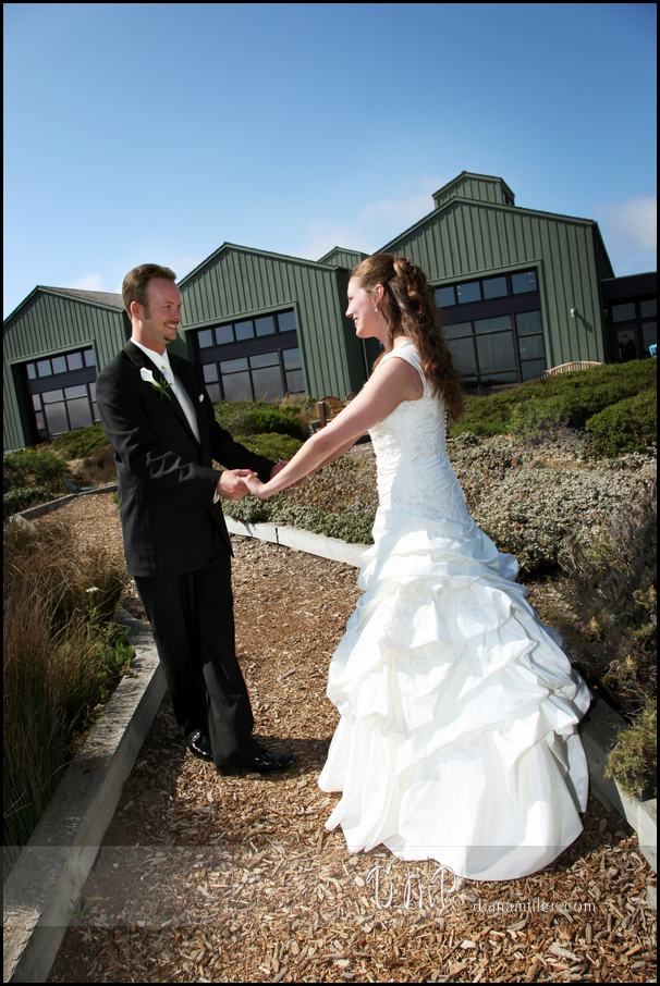 | The wedding party having fun in front of the Seymour Marine Center, Santa Cruz, CA |
