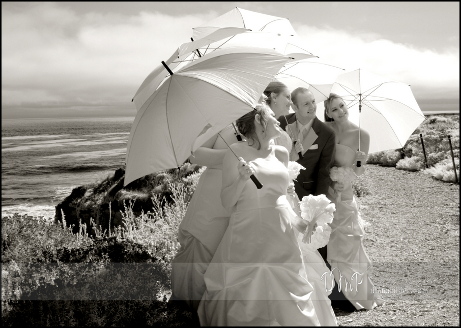 | The bridesmaids in infrared. Notice how the black umbrellas are white now! |