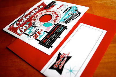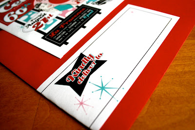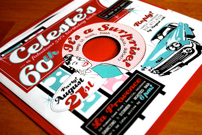 This 50’s inspired invite, with an actual vinyl 45 included, has to be one of my all time favorite invitations to date. Inspired by the 50’s themed event put on to celebrate a 60th birthday party by two of my long time friends & loyal clients.