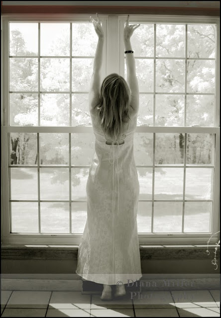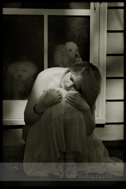 | I love this one with her in the sunlight and the dogs looking out the window |