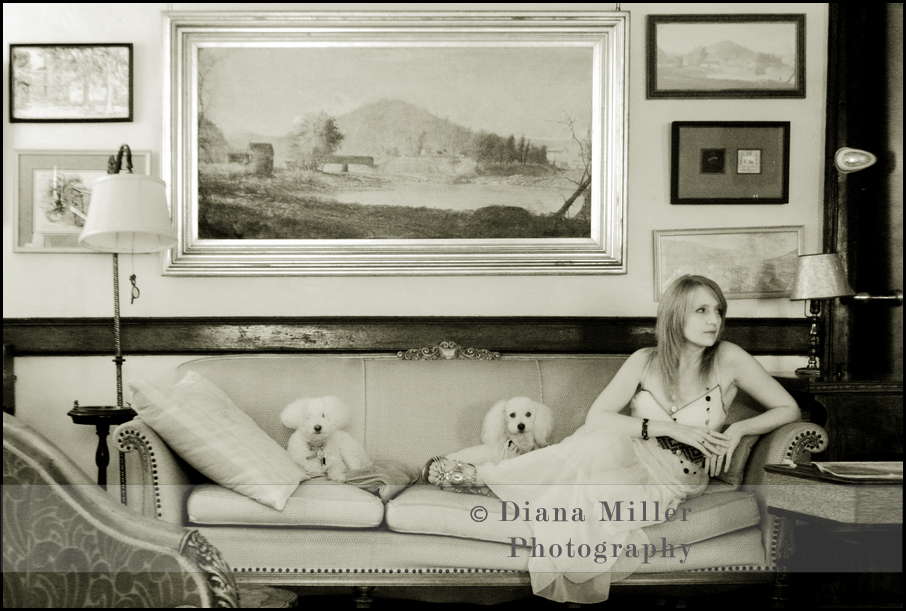 | One of my favorites. I love how she is lounging with the dogs on the old fashioned couch. |