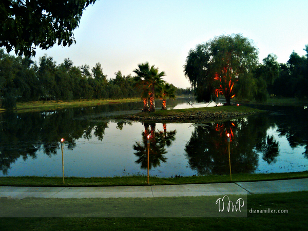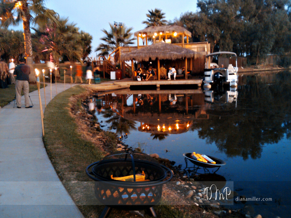 Here are some photos I took with my cell phone (yep!) at the marriage of Rick and Diane. They held an open house to Sacramento area wedding vendors to come check out their place, Lincoln Palm Lake Retreat, during their wedding! It was already pretty dark by the time the ceremony ended, and since I do not have a flash on my phone, I stuck with taking some pics of site rather than people. The place is pretty unique with a lake, boating, a guest house with pool, sandy beach, volleyball net and helicopter pad! It is about 20 mins east of Lincoln, CA. At night it totally reminded me of being in Hawaii, with the tiki torches, sand and island theme. Here is the link to the bride and groom’s site. Another vendor I ran into was Lora Ward, from a Day to Remember, Martha from Blooms by Martha Andrews did the gorgeous flowers, and the beautiful invitation was by Stephanie J Designs,