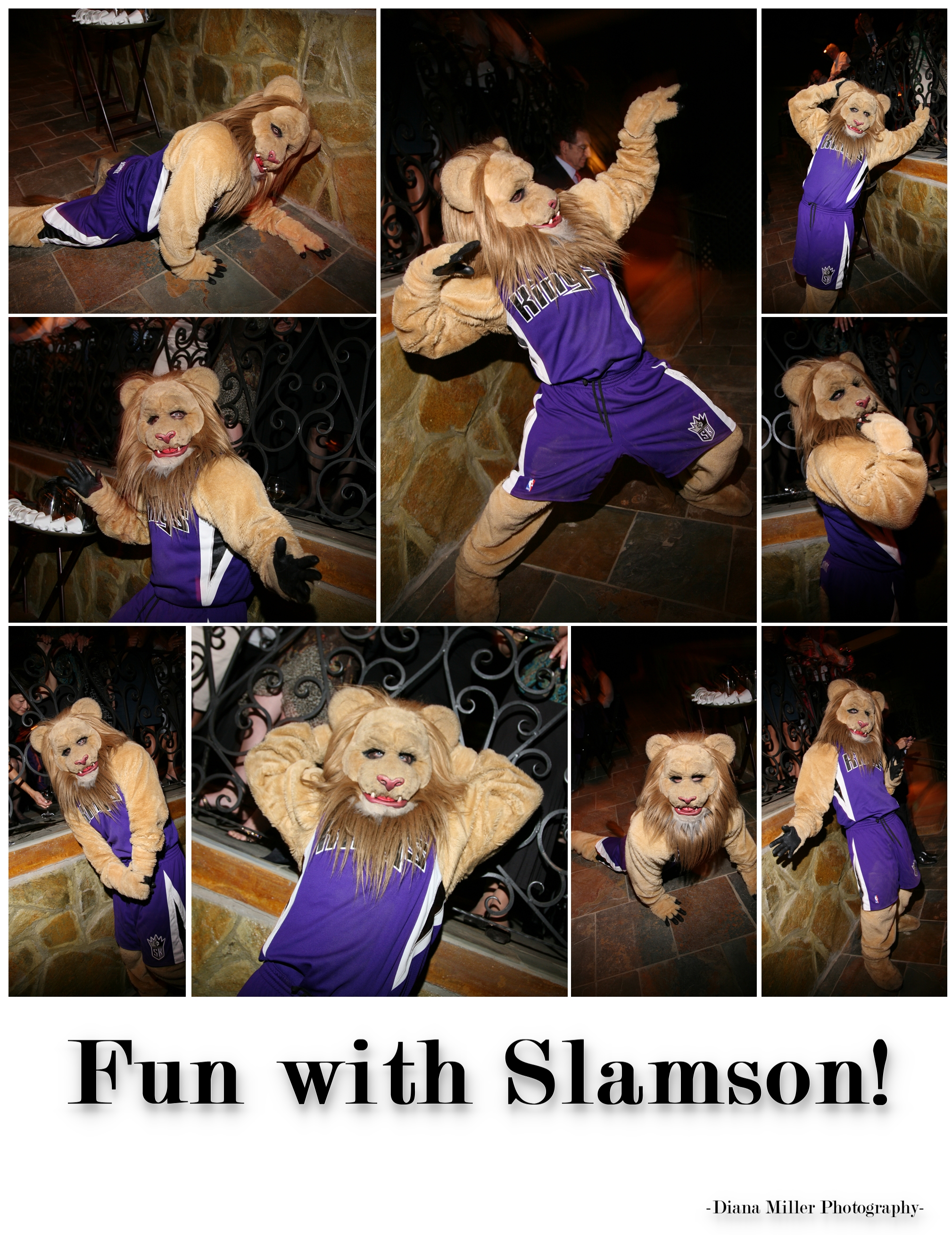Slamson, the Sacramento Kings Mascot, surprised guests at a Sacramento wedding by showing up at the reception. He was a hit on the dance floor!